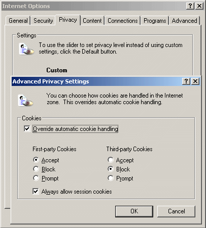 To use the site properly, we recommend these settings for Internet Explorer 6. If you are using an older version of IE we suggest that you upgrade because the cookie settings in IE6 provide more control than earlier versions.